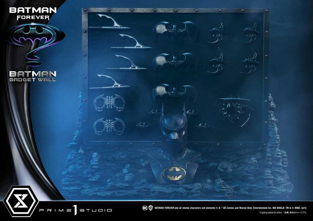 Prime 1 Studio präsentiert dieses fantastische Diorama aus dem Film „Batman Forever“. Die Wand voller Batman Gadgets ist ca. 49 x 60 x 20 cm groß und ist der ideale Backdrop für die passende Batman Statue im Maßstab 1:3.