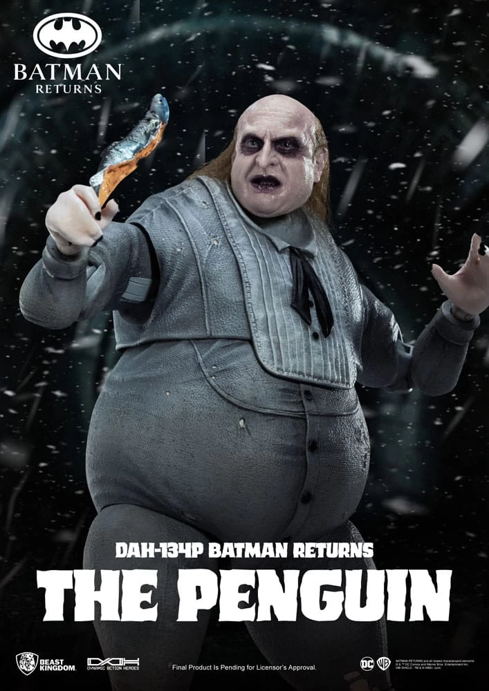 Zum Film ´Batman Returns´ kommt diese großartige Actionfigur von Beast Kingdom Toys. Sie ist ca. 17 cm groß und wird mit weiteren Austausch- und Zubehörteilen in einer bedruckten Box geliefert.