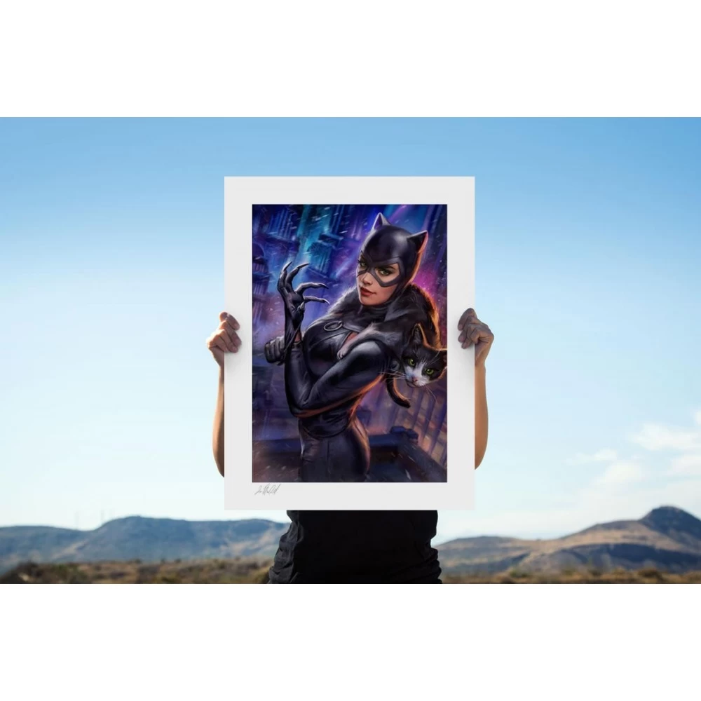 Originally created as a variant cover for Catwoman #21, written by Joëlle Jones for DC Comics, this comic book artwork is now available to fans as a fine art collectible. Each Catwoman #21 Fine Art Print features an authorized, automated artist signature and an embossed Seal of Authenticity as a part of the limited edition of 400 pieces.