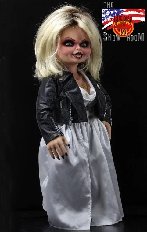 Own a real, posable, life-size replica of the Tiffany doll from the cult classic movie Bride of Chucky! This 1:1 model is based on Tiffany’s on-screen appearance and has been exactingly duplicated from measurements and references from puppeteers who worked on the film to be the most screen-accurate representation available anywhere. It has an inner articulated armature so you can pose her, life-like eyes, synthetic hair, and clothing that precisely matches the screen-used garments. This fantastic replica doll stands approximately 30 inches tall and will be the crowning piece in any collection.