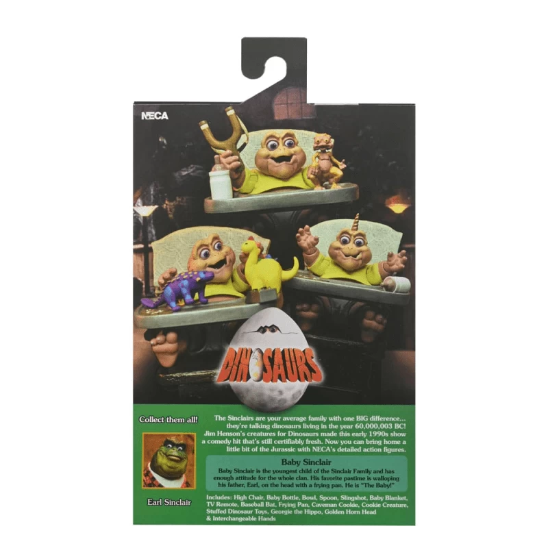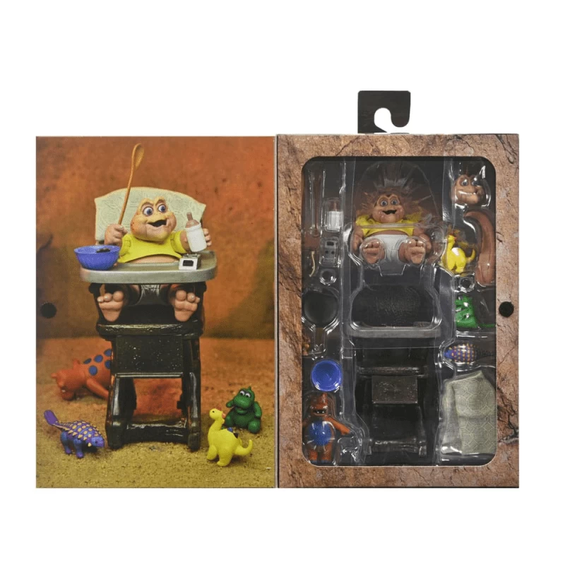 Aus NECAs Figuren-Reihe kommt diese coole Actionfigur aus des Serienklassiker „Dinosaurs“. Sie ist ca. 18 cm groß und wird mit jeder Menge Zubehör und Austauschteilen in einer Fensterbox geliefert.