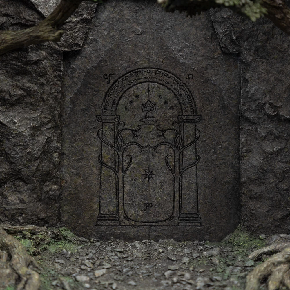 So, it was when the Fellowship came to the Cliffs of Celebdil that they found the Doors closed and surrounded by decay. Even the once beautiful holly trees flanking the entranceway were deathly and pale, their roots drowned by a sickly black pool gathered before the gate. From beneath the murk, unfriendly eyes watched the companions as they paused and sought a way within.