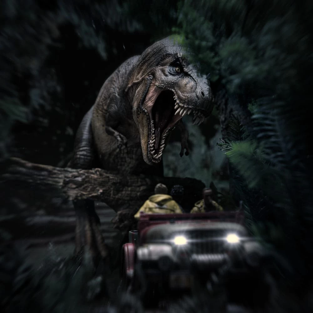 Zu Steven Spielbergs „Jurassic Park“ kommt diese offiziell lizenzierte Statue aus Resin