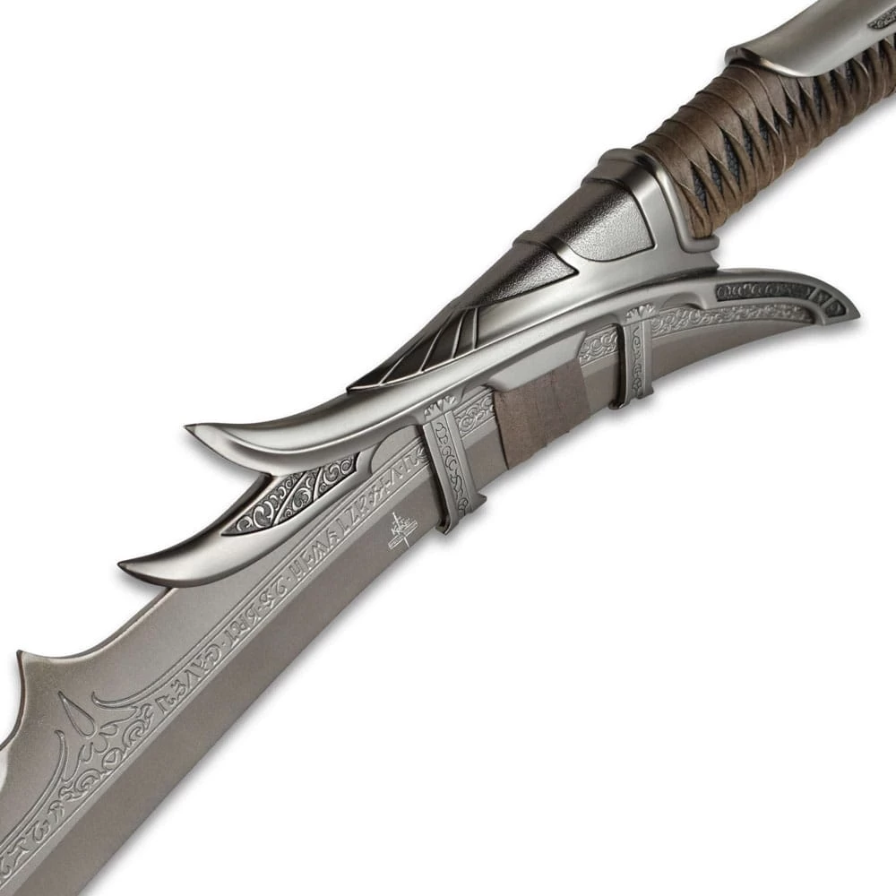 Die sehr beliebte Swords of the Ancients-Kollektion, die 1997 kreiert wurde, ist weltweit unter Sammler-Schwert-Enthusiasten, die nur feinste Designs und höchste Qualität wünschen, legendär geworden. Dieses Kit Rae Mithrodin: Dark Edition Fantasy-Schwert ist eine Sonderausgabe des beliebten Mithrodin-Schwertes aus der Swords of the Ancients-Sammlung. Das Sammel-Fantasy-Schwert hat eine 60 cm lange 420 Edelstahlklinge mit geätzten Runen und einem speziellen „dunklen Eisen-Ende“. Die hochdetaillierten Metallteile aus „dunklem Eisen“ sind alle nach den genauen Spezifikationen des Designers gefertigt. Der Griff ist mit echtem dunklem, braunem Leder umwickelt und verfügt über einen panzerbrechenden Knauf. Dieses Schwert enthält ein Echtheitszertifikat und einen Fantasy-Kunstdruck von Kit Rae.