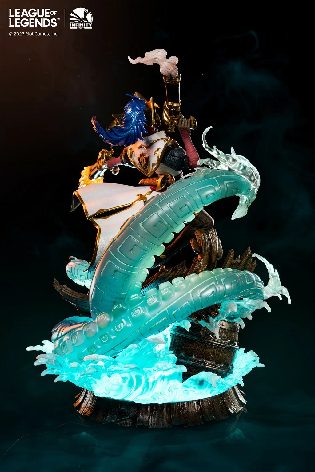 The huge sea monster on the platform emphasizes the danger of the battle. The siren breaks the waves and splashes the waves, the whole is created by the luminous special effects parts. The front side has the logo of League of Legends. The surface is painted with color-changing effect The surface is painted with color-changing effect, which will show different colors when viewed from different angles.
