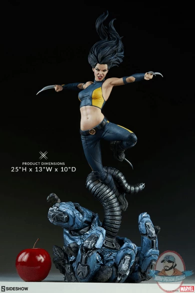 Measuring just over 22 tall, the Rogue Maquette defies gravity in this dynamic and exciting composition that features the mutant s marvelous powers on display. Flying over a detailed Danger Room environment base, Rogue wrenches an intricate mechanical buzz saw from the floor, ready to take a swing at any unwelcome X-Mansion guests.