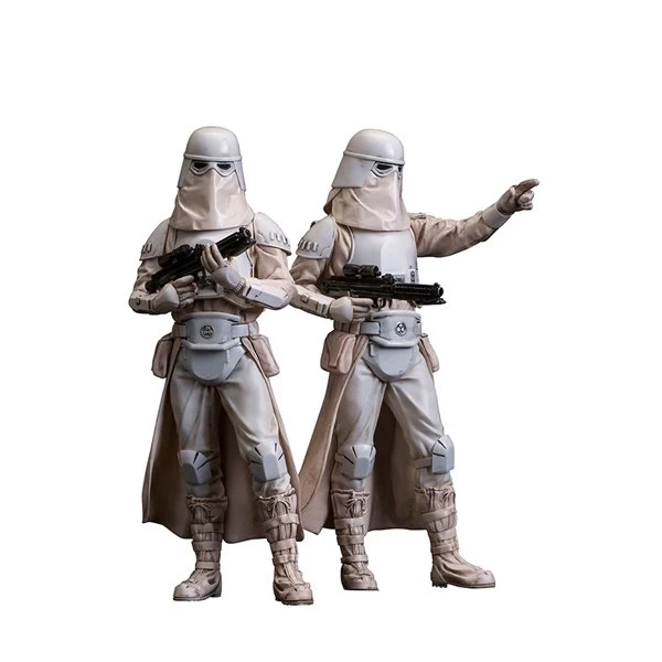 rom Kotobukiya: The Empire Strikes Back with the ARTFX+ Snowtrooper 2-pack! Build your own army of elite Imperial troopers specially trained for harsh, cold environments. The 2-pack includes multiple arm parts, allowing for display in four different poses. Each of these 1/10 scale ARTFX+ troopers stands 7.1″ tall.