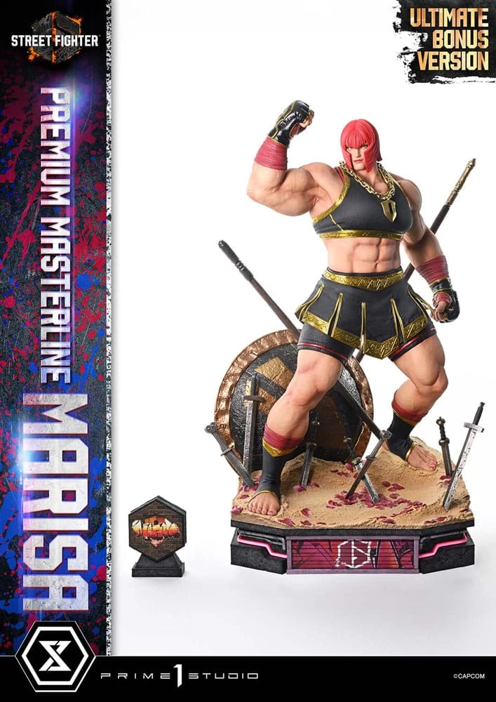 Prime 1 Studio präsentiert diese fantastische Statue aus dem Street Fighter 6 Universum. Sie ist ca. 70 x 45 x 34 cm groß und wurde aus hochwertigem Polystone gefertigt. Das edle Sammlerstück wird mit ansprechender Base, styropor-geschützt, in einem bedruckten Karton geliefert. Produktspezifikationen: – Street Fighter 6 Themenbase (mit LED-Beleuchtung) – 3 x austauschbare Köpfe (Ernst, Kuss, Helm) – 4 x Rechte Arme (gebeugt, Helm haltend, Kussfaust, entspannter Arm) – 2 x Kopfständer – 1 x Effekt-Wand – 1 x Marisa Graffiti Logo Ständer [BONUS TEIL] LED-Stromversorgung Methode: TBA * Bitte bereiten Sie Batterien, USB-Kabel oder andere notwendige Dinge vor, je nach der endgültigen Stromversorgungsmethode