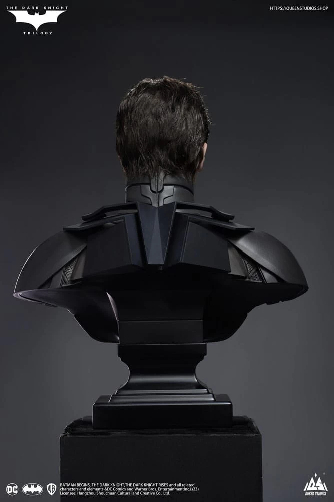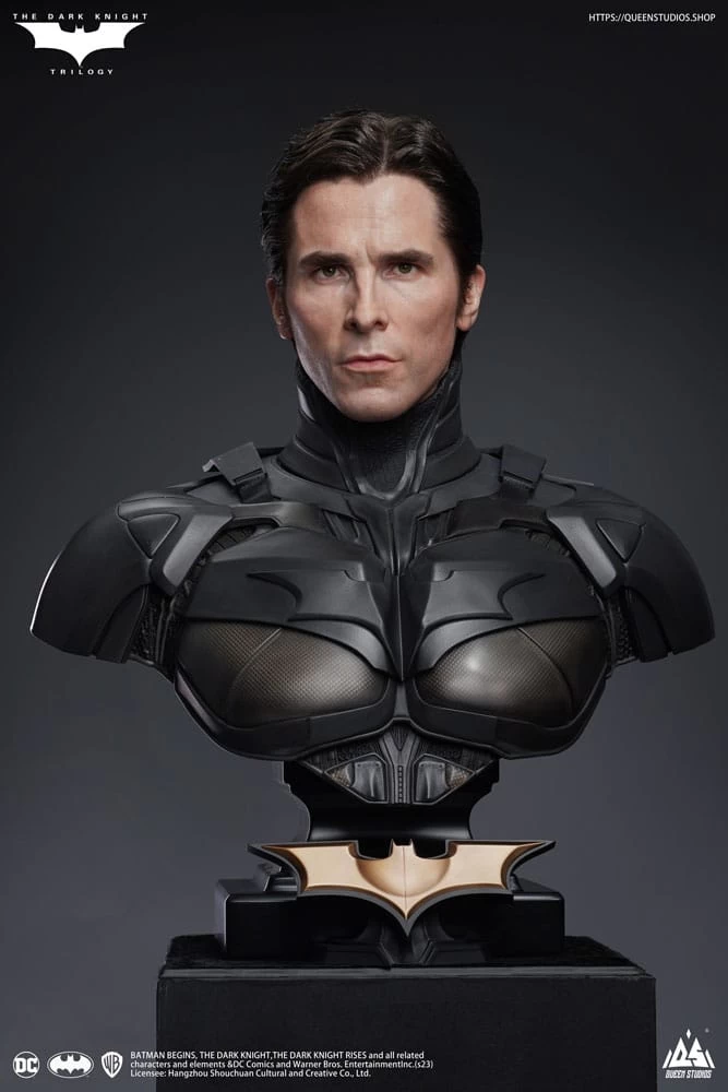Queen Studios präsentiert mit Stolz die TDK Batman 1/1 Statue und die 1/1 Büste in Lebensgröße. Beide unvergleichliche Meisterwerke, die die Essenz von Christian Bales Darstellung des Dunklen Ritters einfangen. Es gibt vier Varianten: Regular Edition, Premium Edition, Deluxe Edition und Ultimate Edition. Die Regular Edition enthält eine erstaunlich lebensechte, lebensgroße Büste von Christian Bale, komplett mit sorgfältig verwurzeltem Kunsthaar. Über die Base: Die Masked Batman 1/1 Statue steht zu Recht auf einem Sockel, der mit dem ikonischen Batman-Logo verziert ist und diesem außergewöhnlichen Sammlerstück einen subtilen Hauch von Gothams düsterer Raffinesse verleiht. Der Sockel unterstreicht nicht nur die visuelle Pracht der Statue, sondern ist auch eine Hommage an Batmans bleibendes Vermächtnis in einer von der Dunkelheit geplagten Stadt. Auf dem Sockel der Christian Bale Life-Size Bust befindet sich außerdem ein prominentes Batman-Logo auf der Vorderseite. Der detailreiche Blickfang ist ca. 61 x 77 x 43 cm groß und auf nur 129 Stück limitiert