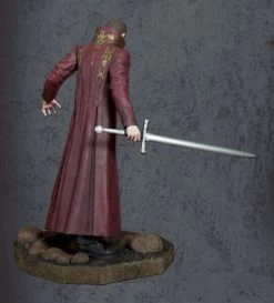 Diese Replik mit authentischen Details ist eine Reproduktion der Requisite, die vom Weta Workshop in Neuseeland hergestellt und in dem Film DER HOBBIT: SMAUGS EINÖDE verwendet wurde. Der Helm besteht aus verstärktem Polyresin und besitzt genaue Details und Farbgebung, darunter Witterungs- und Alterungseffekte. Zum Lieferumfang gehört ein Display aus Polystone und Holz, das die Form der Nacken- und Schulterpanzerung einer Wache in Bruchtal hat. Ein Echtheitszertifikat ist inklusive.