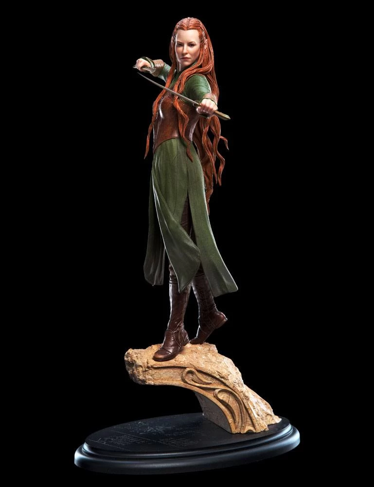 As a character who was specifically created for The Hobbit motion picture trilogy, Tauriel presented a unique challenge to Weta Workshop s Design Studio. Designers sought to strike a balance between fierce huntress and feminine Elf through weapons and costume. Weta Workshop designer Paul Tobin matched Tauriel s fighting strength to that of Legolas with a signature set of daggers.