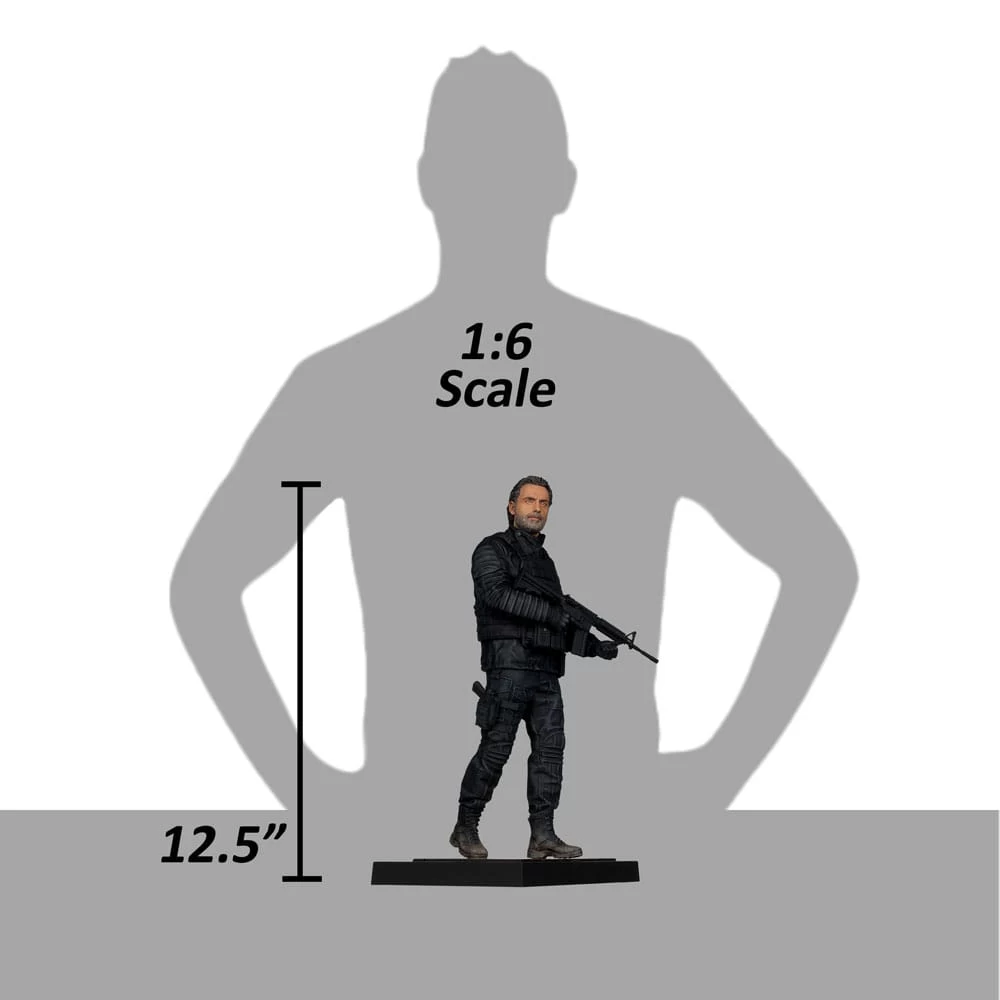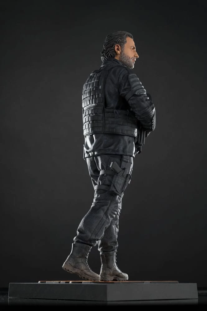 Zur TV-Serie „The Walking Dead: The Ones Who Live“ kommt diese Statue. Sie ist ca. 31 cm groß und wird mit weiterem Zubehör und Base in einer Fensterbox geliefert.