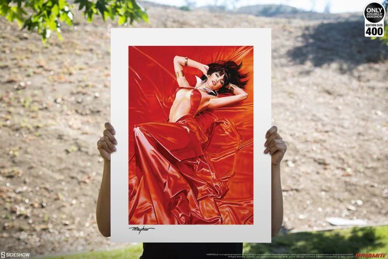 Originally created as a variant cover for Vampirella: Roses for the Dead #1, written by Kristina Deak-Linsner for Dynamite Entertainment, this comic art collectible is now available for fans in a high-end fine art format exclusively through Sideshow. Each Vampirella: Roses for the Dead Fine Art Print features an authorized, automated artist signature and an embossed Seal of Authenticity as a part of the limited edition of 400 pieces.